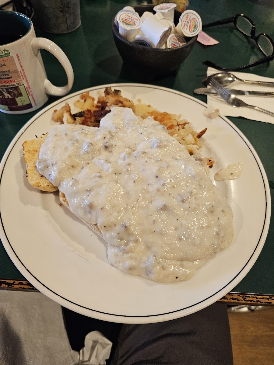 Maybe I wasn't feeling all that well but I don't think that the biscuits and gravy had a whole heck of a lot of flavor. It wasn't bad but it wasn't great. The service was awesome and I really did appreciate the atmosphere. My family is a huge fan of this place and I definitely go back